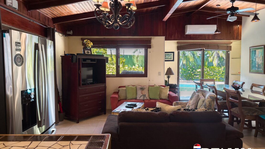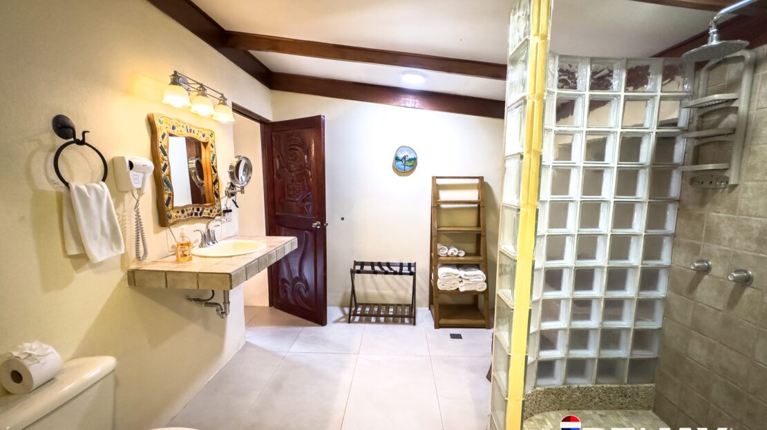 The home includes private parking for up to five vehicles and sits on fully titled land, a valuable feature for beachfront ownership in Costa Rica.