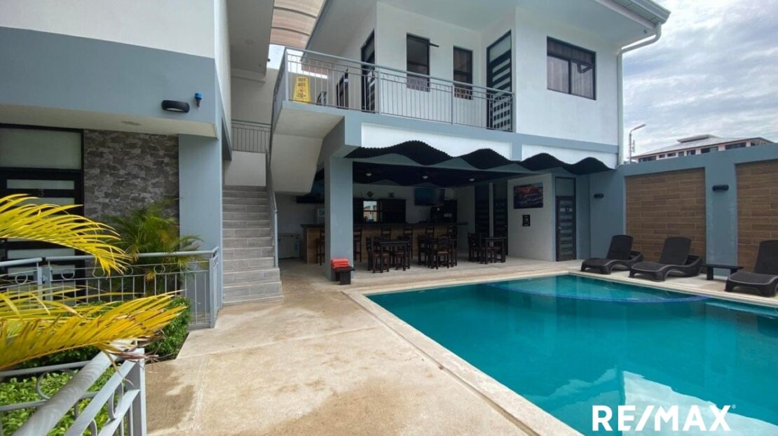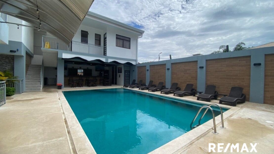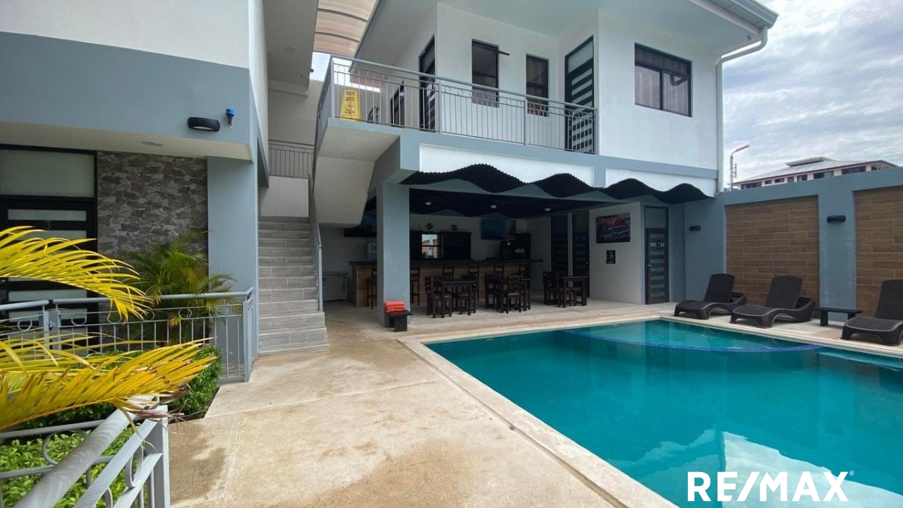 Attention investors: Located in the vibrant heart of Jacó, this welcoming hotel presents a unique investment opportunity in one of Costa Rica’s most dynamic coastal areas. With 8 guest rooms and 4 two-bedroom apartments, plus a fully-equipped one-bedroom apartment, each unit includes air conditioning and hot water for year-round comfort. The property also boasts a swimming pool, and a bar, —perfect for a complete and relaxing experience in Jacó.
