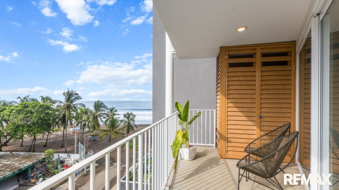 Welcome to Pacific Point 504, a beautifully furnished 2-bedroom, 2-bathroom ocean view condo for sale in Jaco Beach, Costa Rica. Located on the 5th floor of a newly completed beachfront building (2024), this 1,044-square-foot unit offers the rare potential to convert into a lock-off configuration, allowing two separate rental units. It’s an ideal setup for vacation homeowners or investors looking to maximize returns in Costa Rica’s most vibrant beach town.