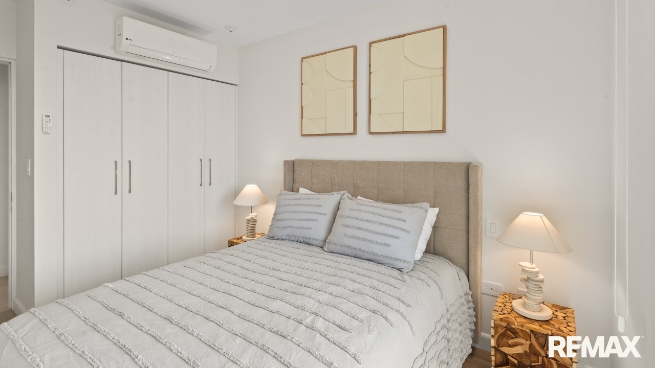Bienvenido a Pacific Point 504, un elegante condominio amueblado de 2 dormitorios y 2 baños con vista al mar en venta en Playa Jacó, Costa Rica. Ubicado en el quinto piso de un moderno edificio frente al mar finalizado en 2024, esta unidad de 97 metros cuadrados ofrece la opción única de convertirse en un condominio tipo lock-off, ideal para generar dos rentas vacacionales independientes.