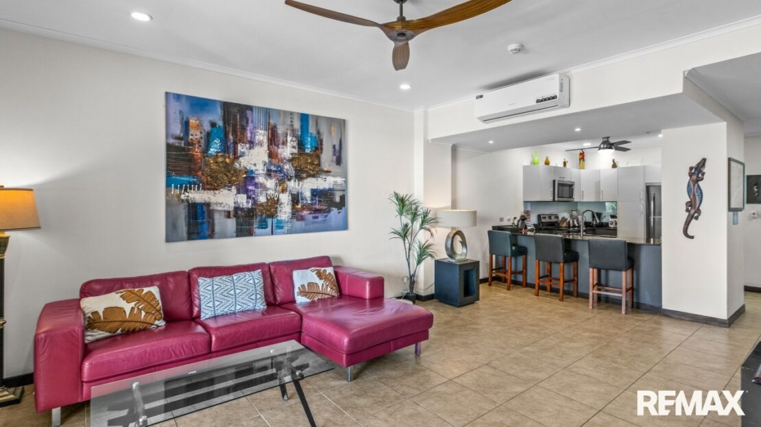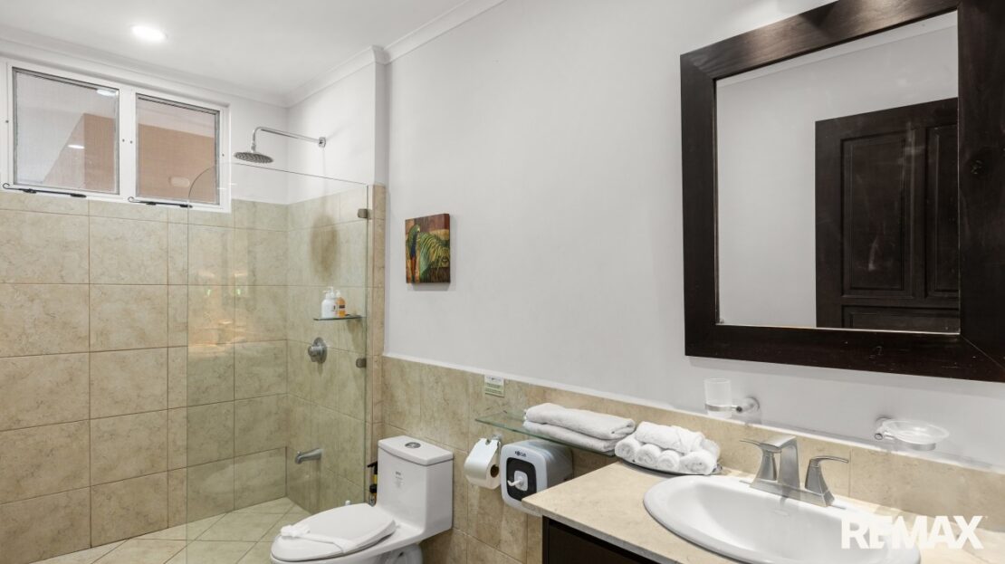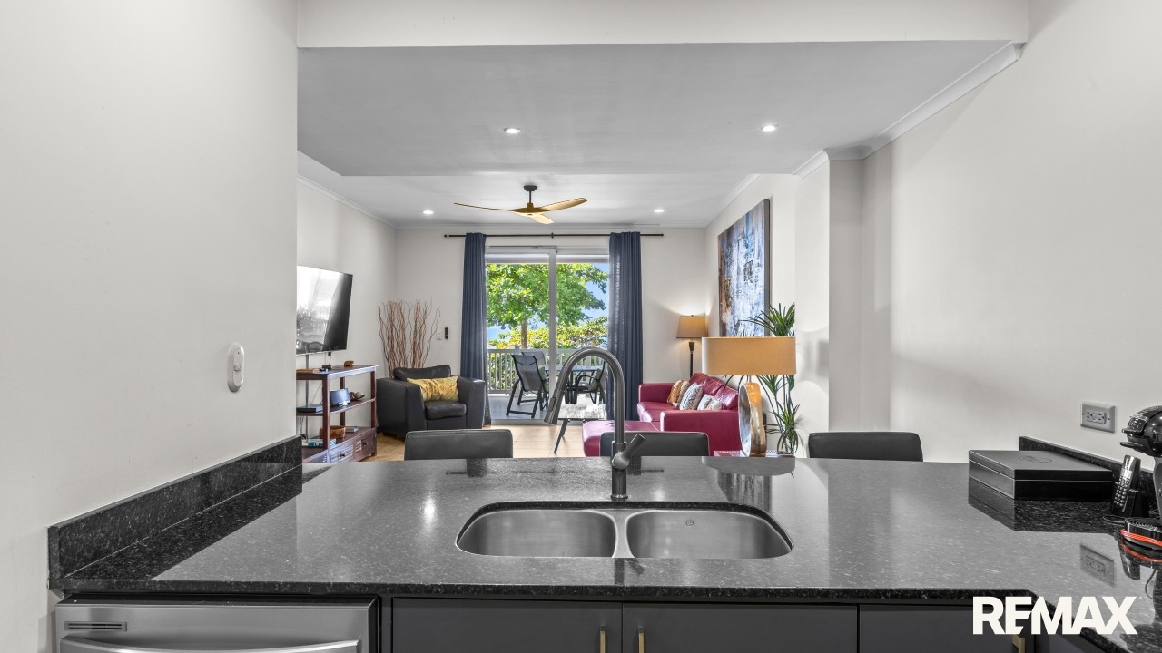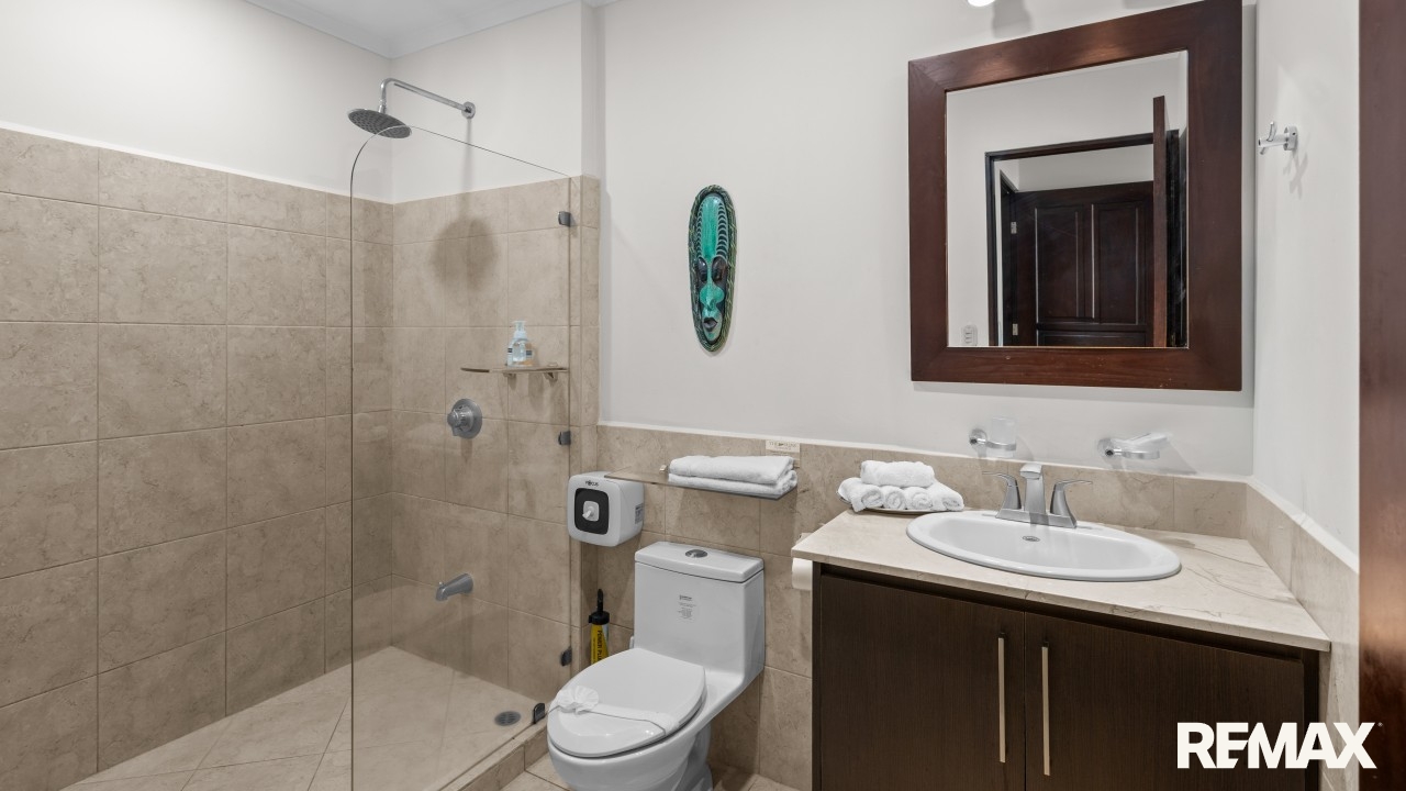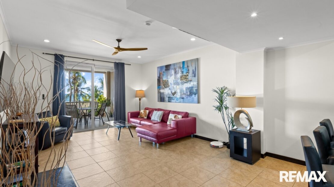 The Palms 203 is a direct oceanfront condo located on the 2nd floor of the Palms building in Jaco Beach. This spacious residence features 2 bedrooms, 2 bathrooms, and 138 m² (1,485 square feet) of well-designed interior living space, complemented by one of the largest oceanfront terraces in Jaco.