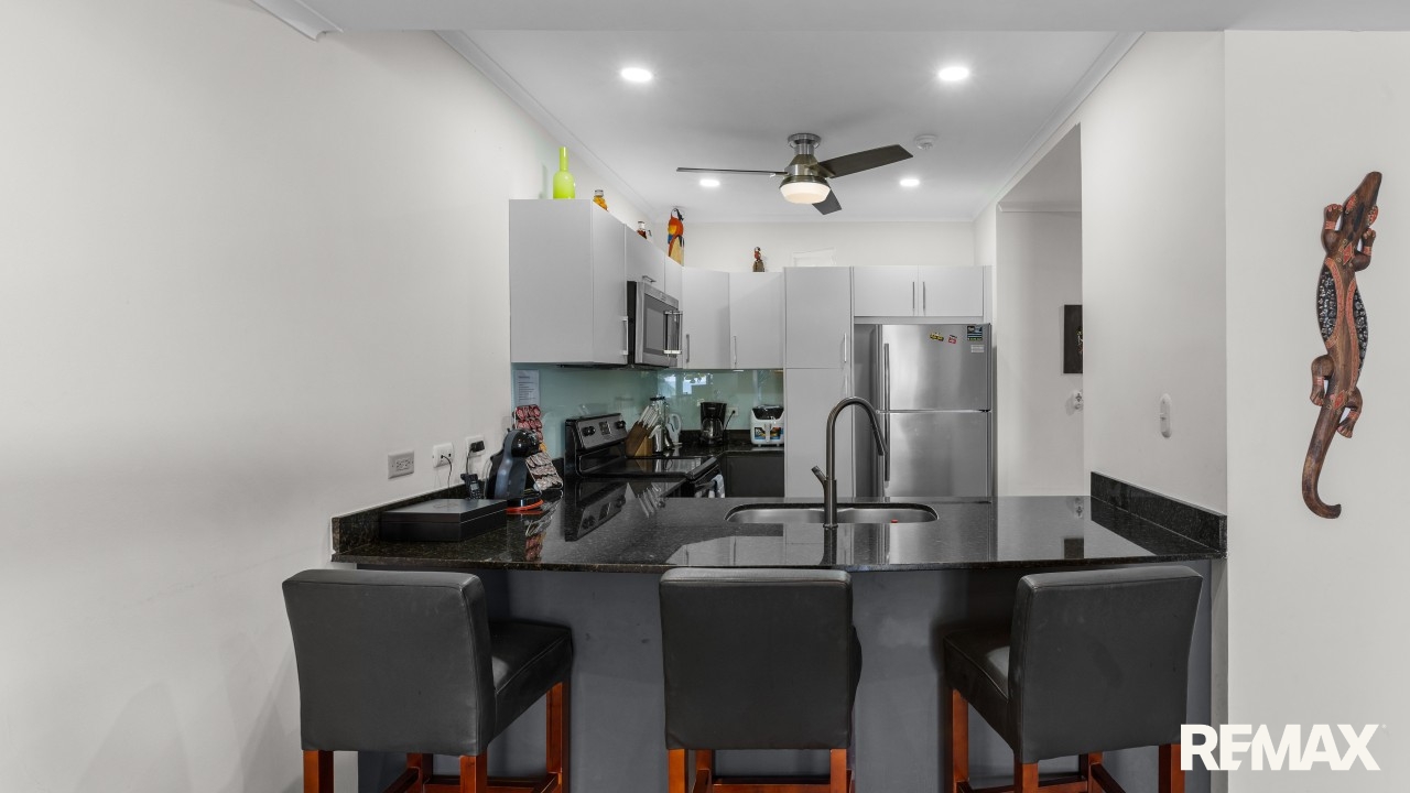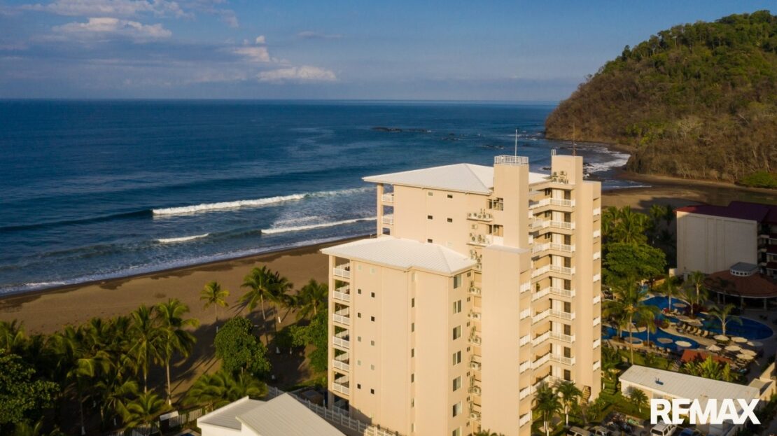The Palms is a 10-story boutique oceanfront building located on the desirable north end of Jaco Beach. With only 33 condos, it offers privacy and exclusivity along with 24-hour security, two elevators, and an oceanfront swimming pool. Internet is included in the HOA fees, and owners and guests also enjoy direct access to the oceanfront pool at the Croc’s Casino Resort, a rare and valuable benefit.