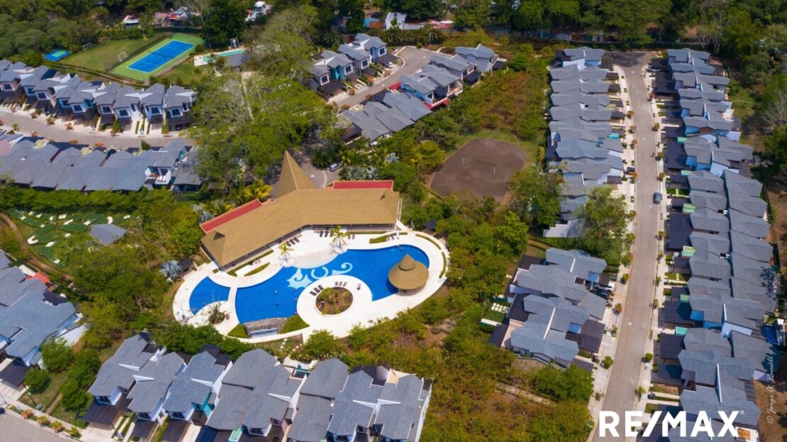 Outside, a terrace at the back of the house provides an ideal space for outdoor gatherings or simply enjoying the pleasant weather. Moreover, this property offers a range of luxurious amenities, including a gym, a community pool, a semi-Olympic swimming pool, a mini-golf course, a tennis court, a basketball court, and a soccer court.